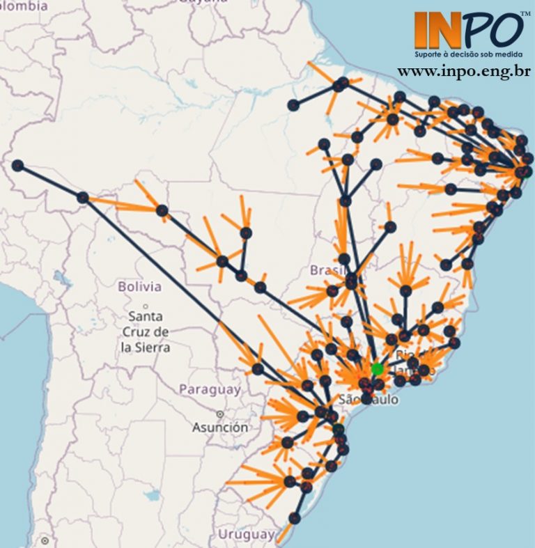 Os problemas representam casos realistas, em que existem demandas de produto espalhadas pelo país e para os quais se busca identificar os locais e os fluxos de transporte que minimizam o custo total operacional.